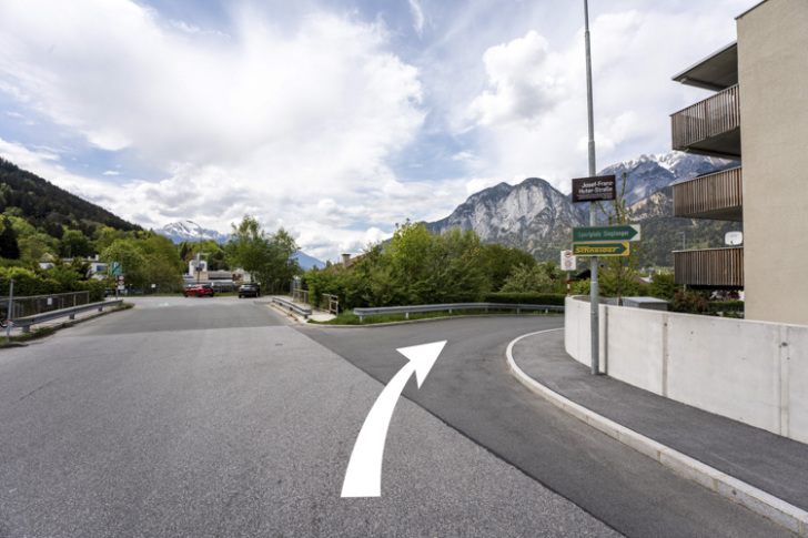 Wenn Sie Google Maps folgen, fahren Sie weiter gerade aus bis zu einer Rechtskurve und biegen Sie bei der Kurve links ab!